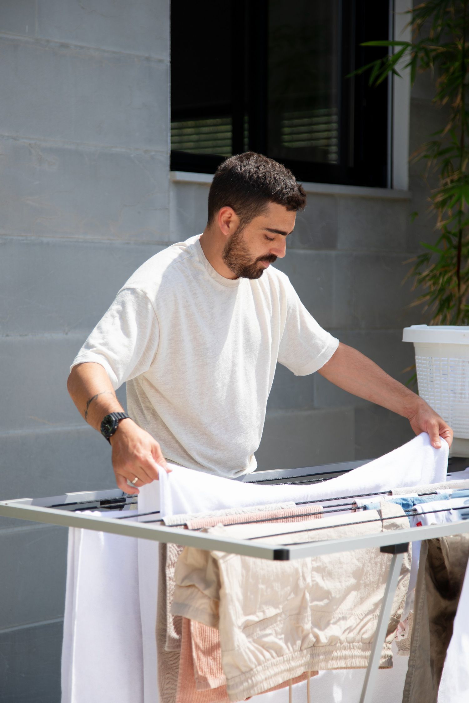 כשהכביסה מצטברת, עולה הצורך הטבעי בפתרון ייבוש חכם שיודע להכיל הכל במקום אחד מסודר, מבלי להעמיס על המרחב של המרפסת או הגינה.