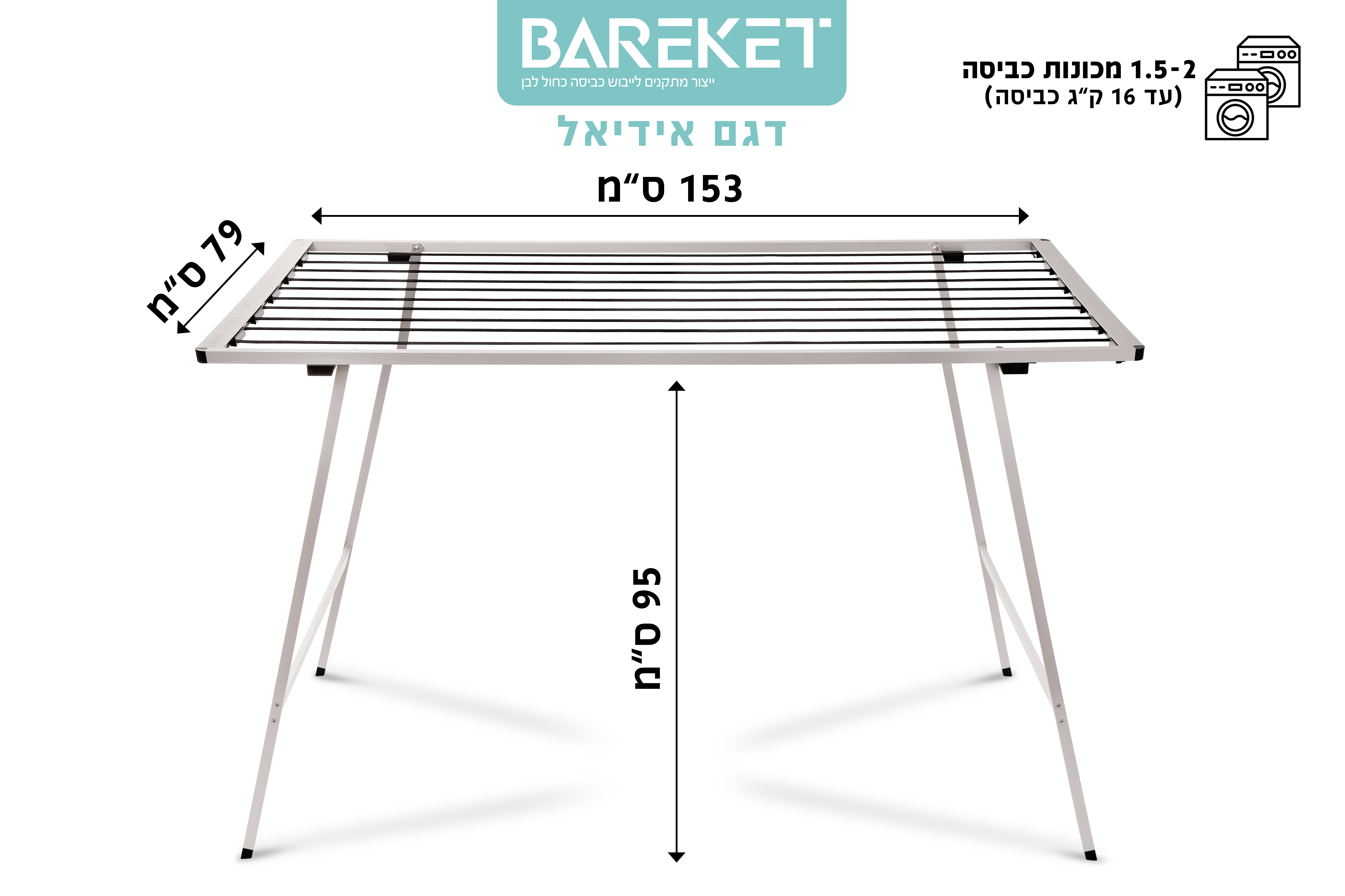 השינוי האמיתי מתרחש ביום הכביסה הראשון שלכם עם ברקת. פתאום, המרפסת נראית מסודרת. המתקן עומד יציב, חזק, ונושא בקלות מעל 32 ק"ג של כביסה רטובה – שלוש מכונות שלמות מבלי שהחבלים ימתחו או ייצרו "בטן".
