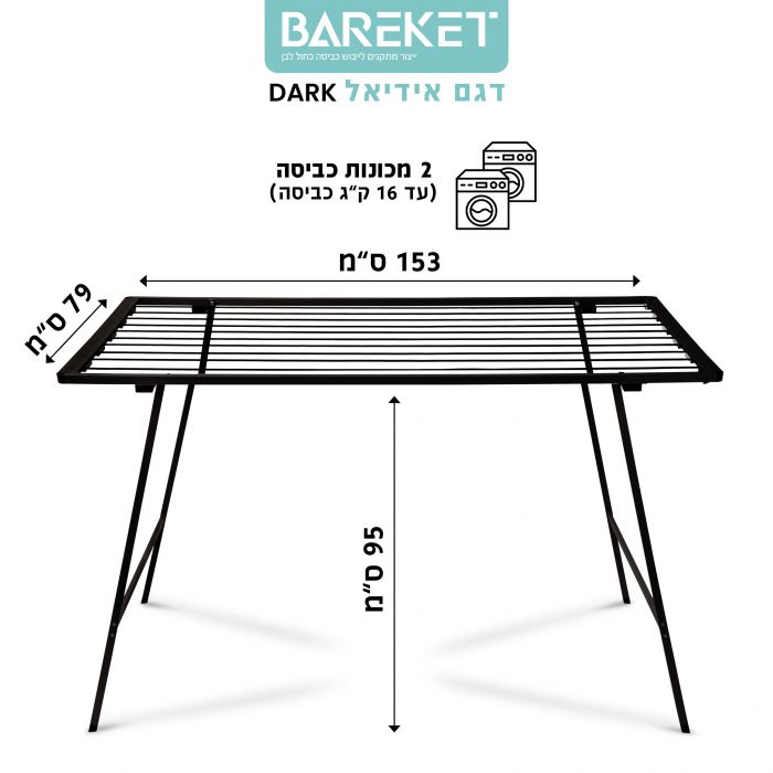 - מתלה כביסה חברת ברקת דגם DARK אידיאל 153/79 ס"מ, המחיר כולל משלוח לבית הלקוח.